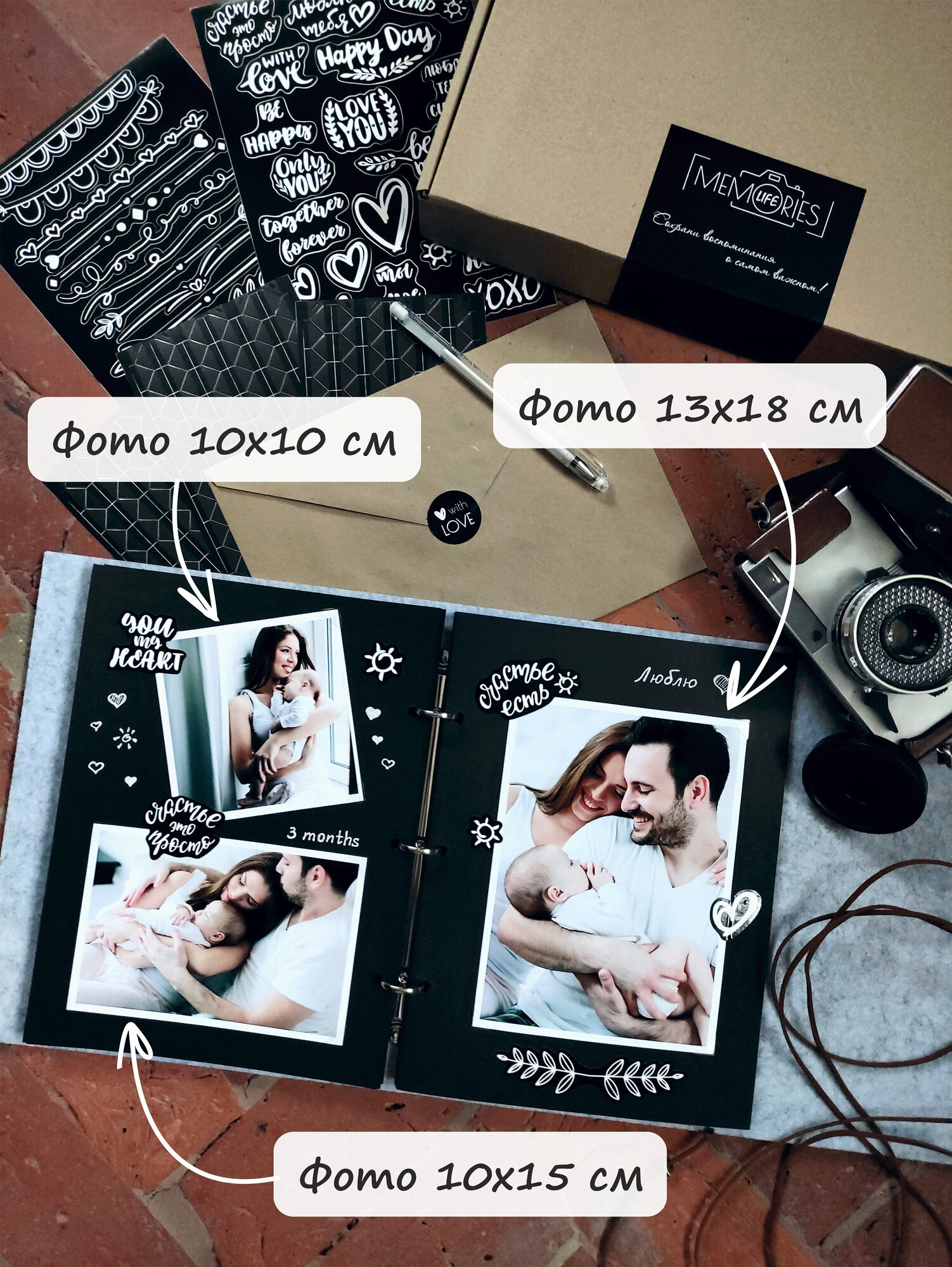 Фотоальбом Memories Life семейный свадебный с наклейками светло-серый интересное: