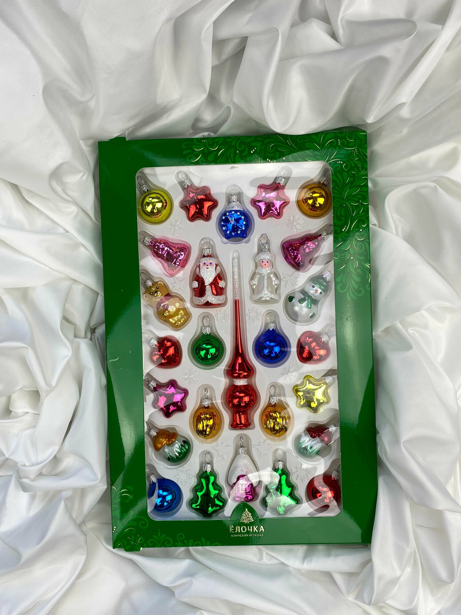 | Комплектация | елочные шары - 6 шт., фигурки-ягоды - 2 шт., фигурка-перчик, фигурка-кукуруза, сосулька, колокольчик, наконечник на ёлку |