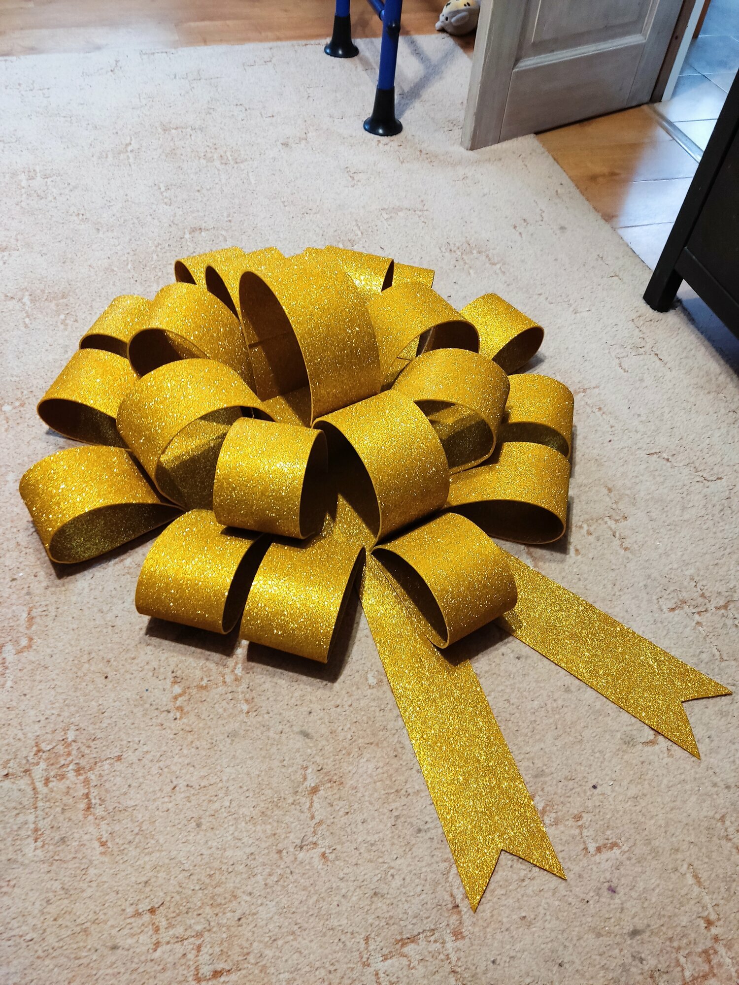 СохранитьБольшой бант на авто / Бант на машину подарочный / Огромный бант для оформления подарка / Золотой глиттерный гигантский бант 100 см / Метровый бант интересное: