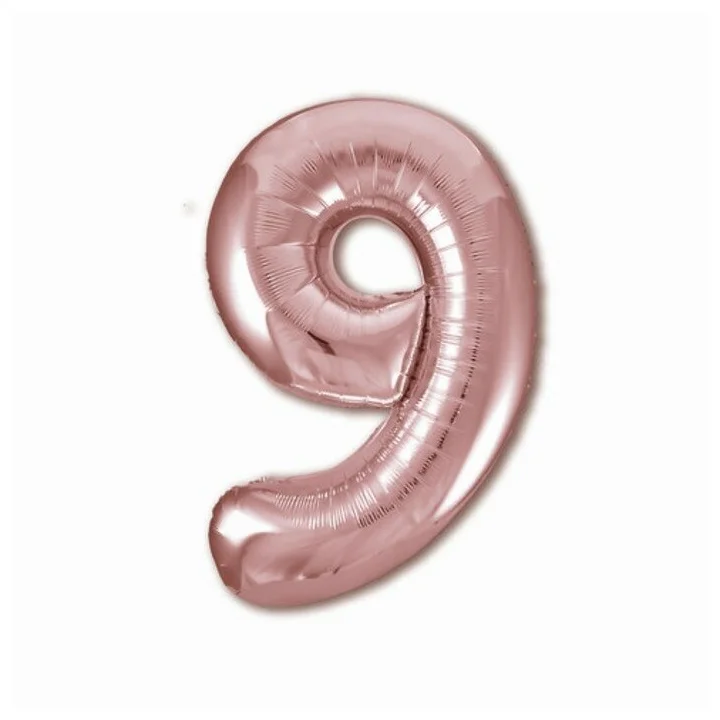 Воздушный шар, фольгированный, "Цифра 9", цвет розовое золото, 100 см