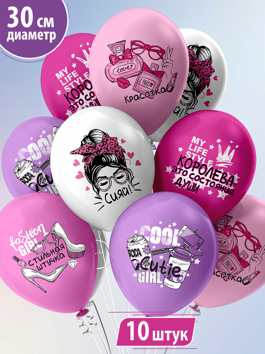 Шарики воздушные для девушки на праздник День рождения "Красотка" 10 шт