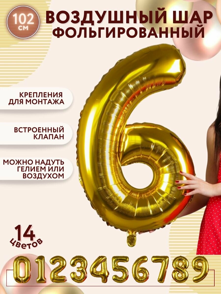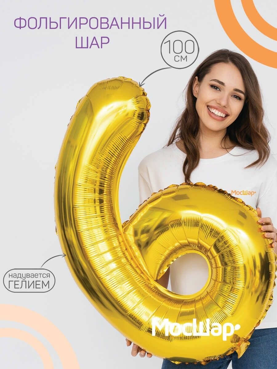 Купить Фольгированный воздушный шар цифра 6 шесть золотой 100см - Мосшар