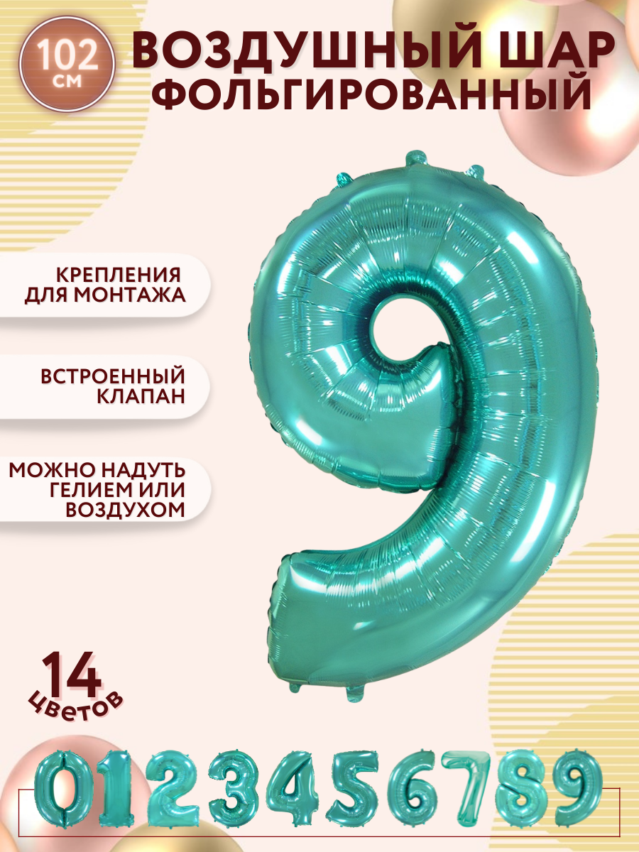 Купить Фольгированный воздушный шар цифра 9 девять тиффани 100см - Мосшар