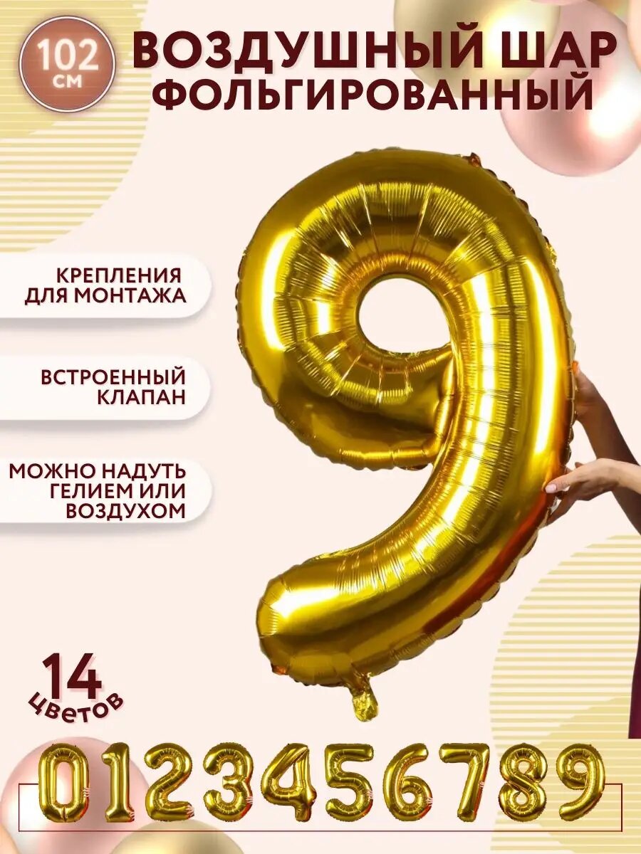 СохранитьФольгированный воздушный шар цифра 9 девять золотой 100см - Мосшар интересное: