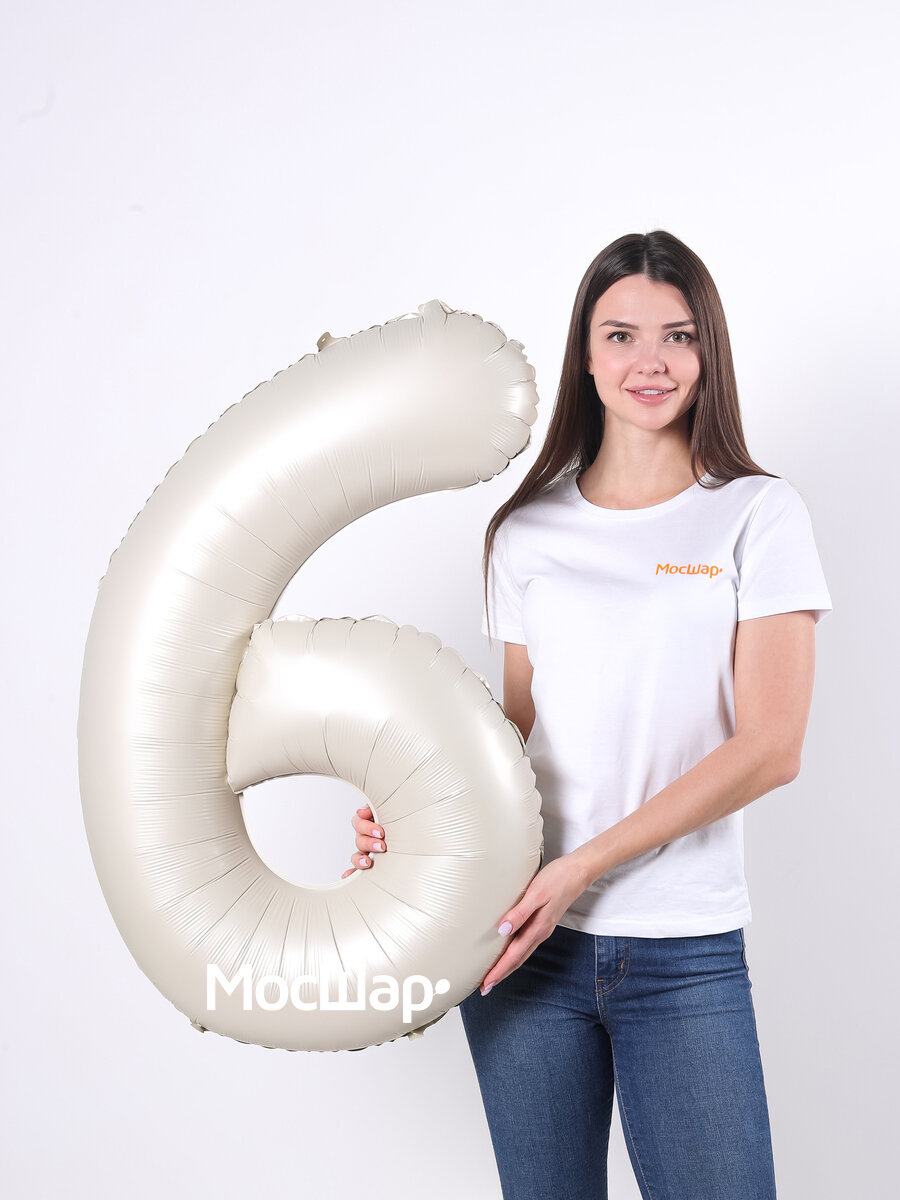 Купить Фольгированный воздушный шар цифра 6 шесть айвори 100см - Мосшар