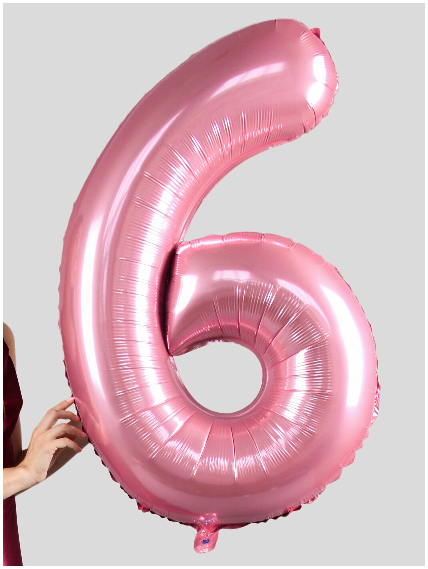 Купить Фольгированный воздушный шар цифра 6 шесть розовый 100см - Мосшар