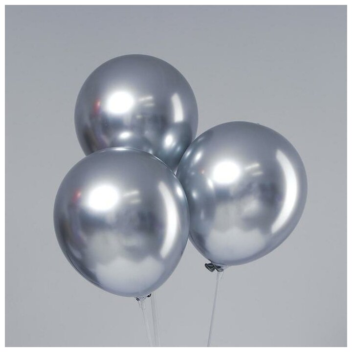 Шар латексный 12", "Хром", металл, 5 шт, цвет серебряный