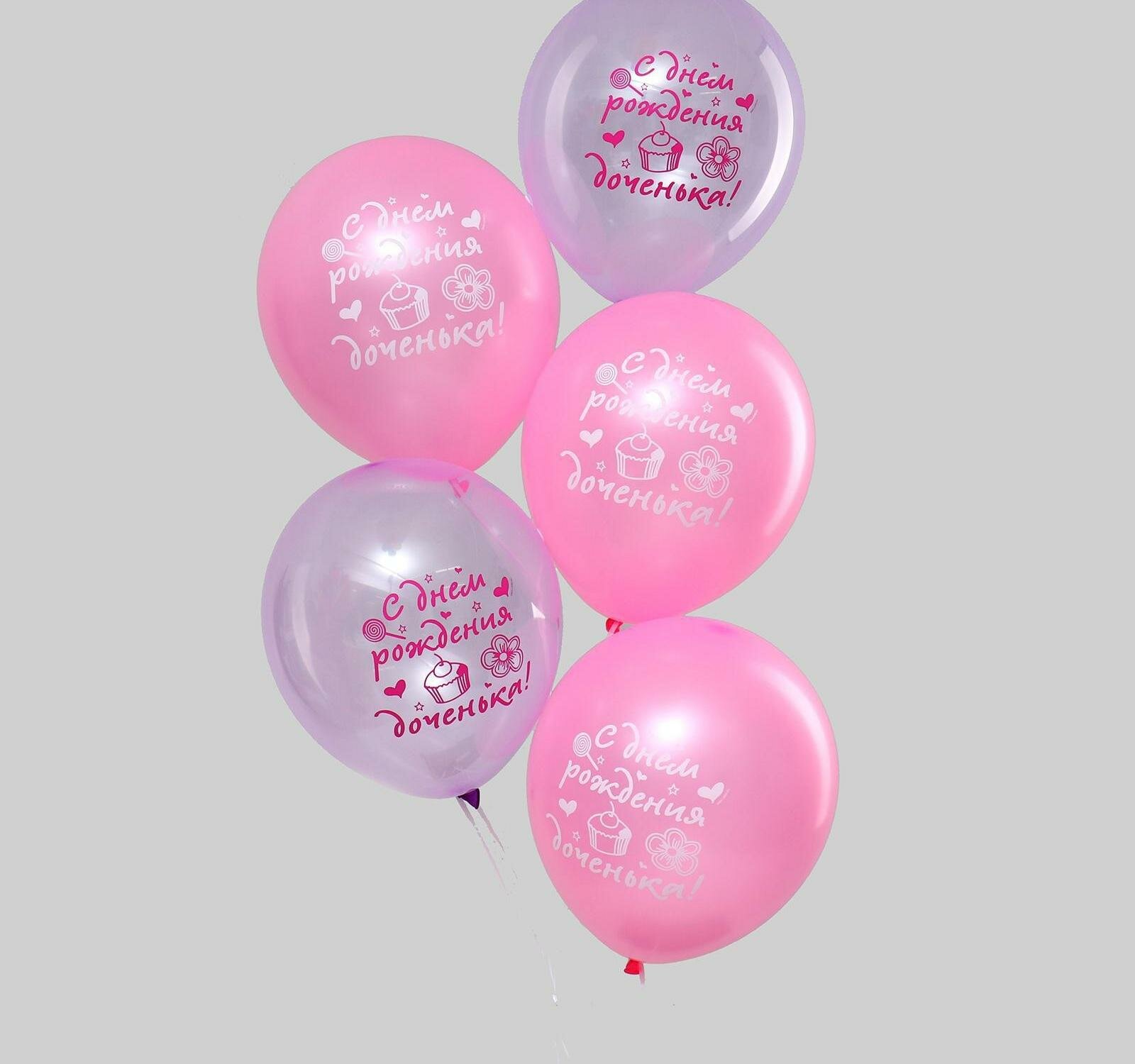 Воздушные шары латексные "С днем рождения, доченька", 5 шт, 12", диаметр 30 см, Страна Карнавалия