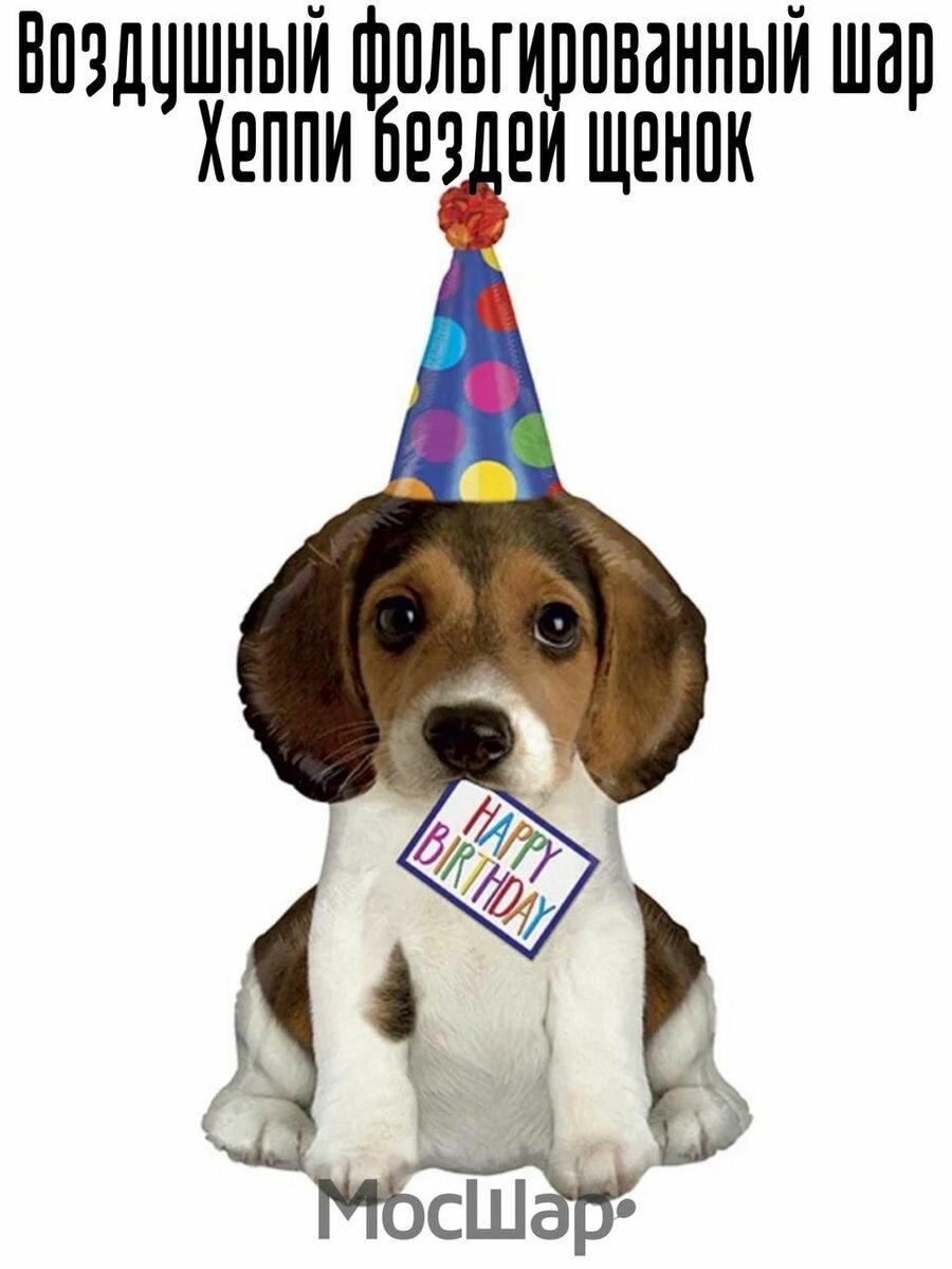 СохранитьВоздушный шар фольгированный собачка/щенок в колпачке С днем рождения, 92 см, МосШар интересное: