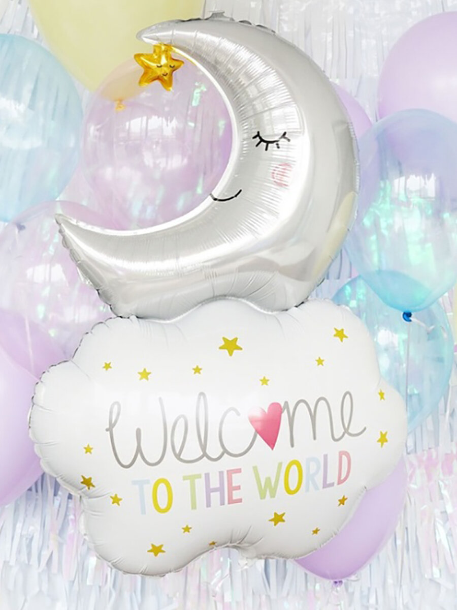 СохранитьВоздушный шар фольгированный на выписку, рождение девочки месяц и облака 104 см, МосШар интересное: