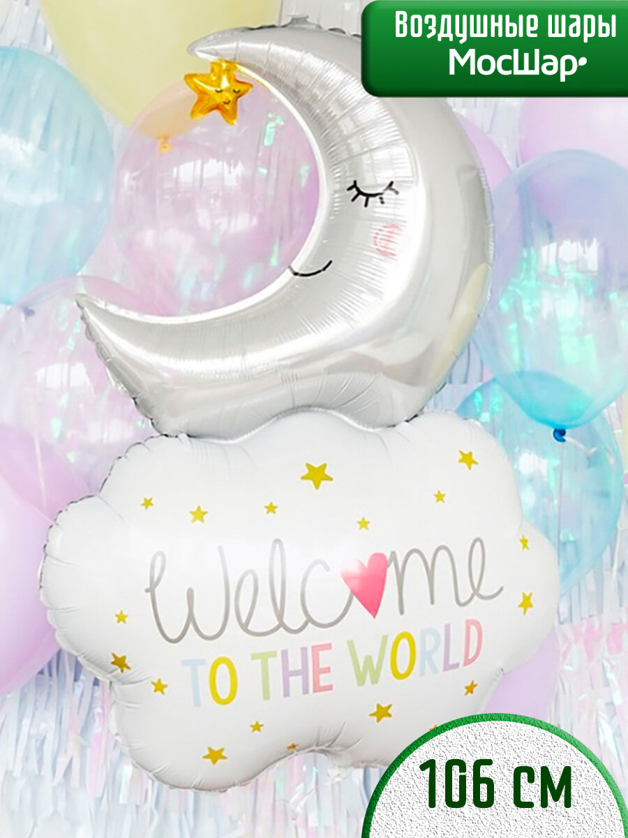Купить Воздушный шар фольгированный на выписку, рождение девочки месяц и облака 104 см, МосШар