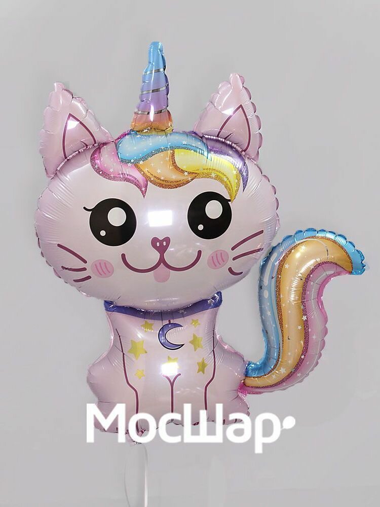 Купить Воздушный шар фольгированный Кот единорог розовый 89 см, МосШар