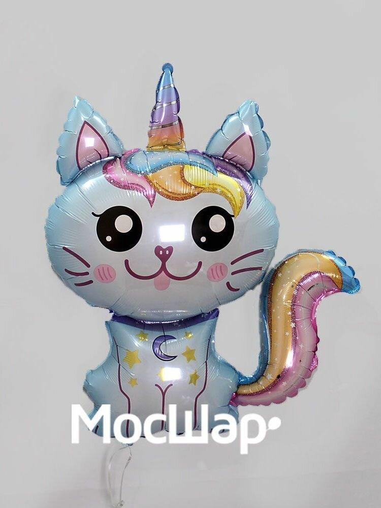 Купить Воздушный шар фольгированный Кот единорог голубой 89 см, МосШар