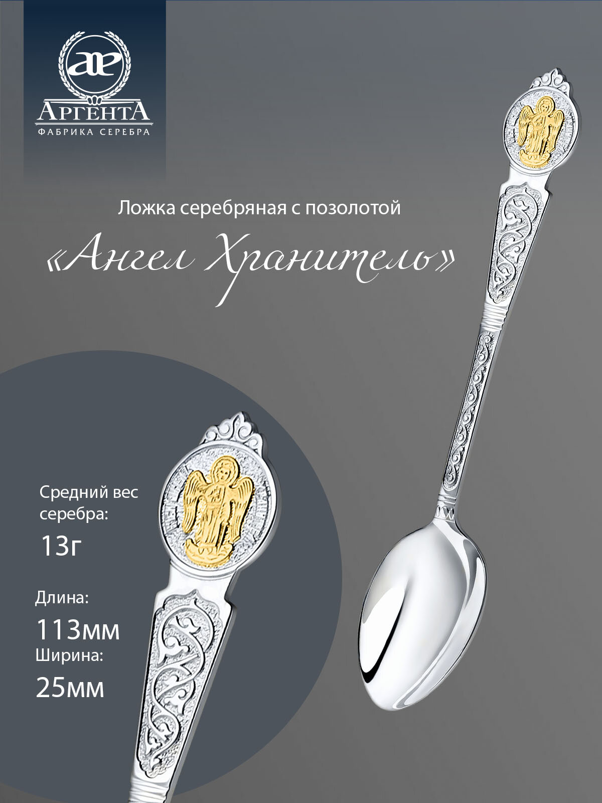 Серебряная ложка "Ангел-хранитель" с позолотой, 925 проба интересное: