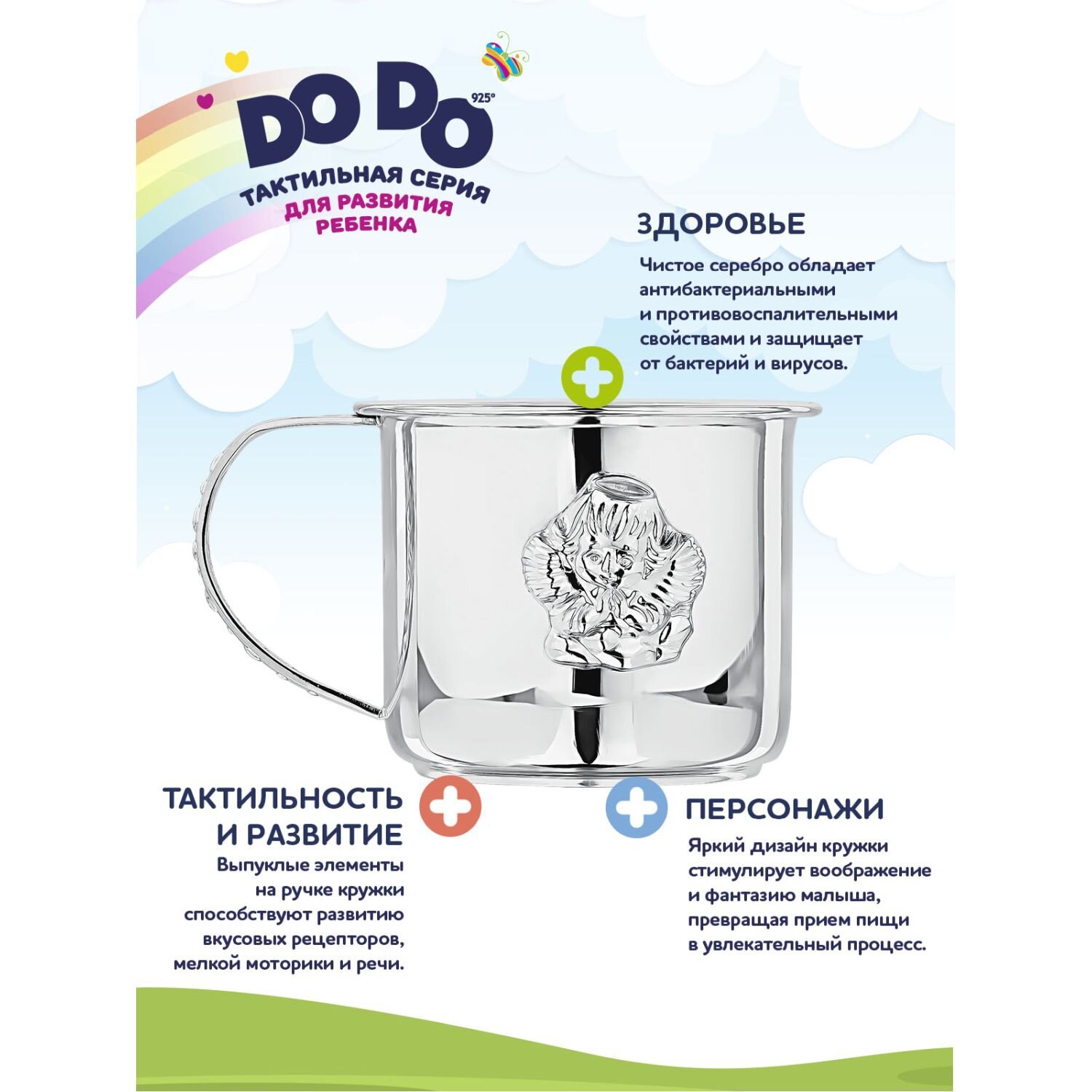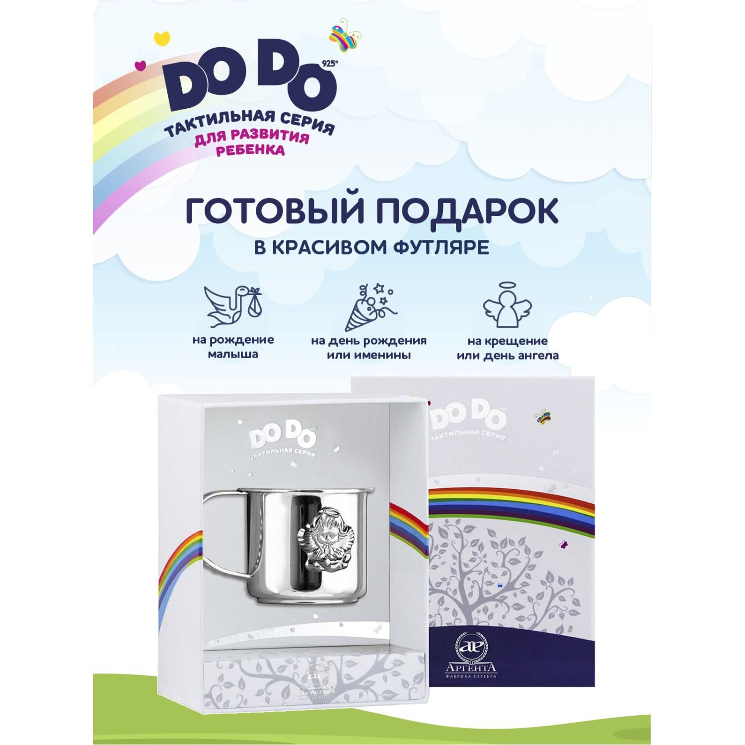 Серебряная детская кружка DoDo АргентА "Ангел" с позолотой и эмалью
