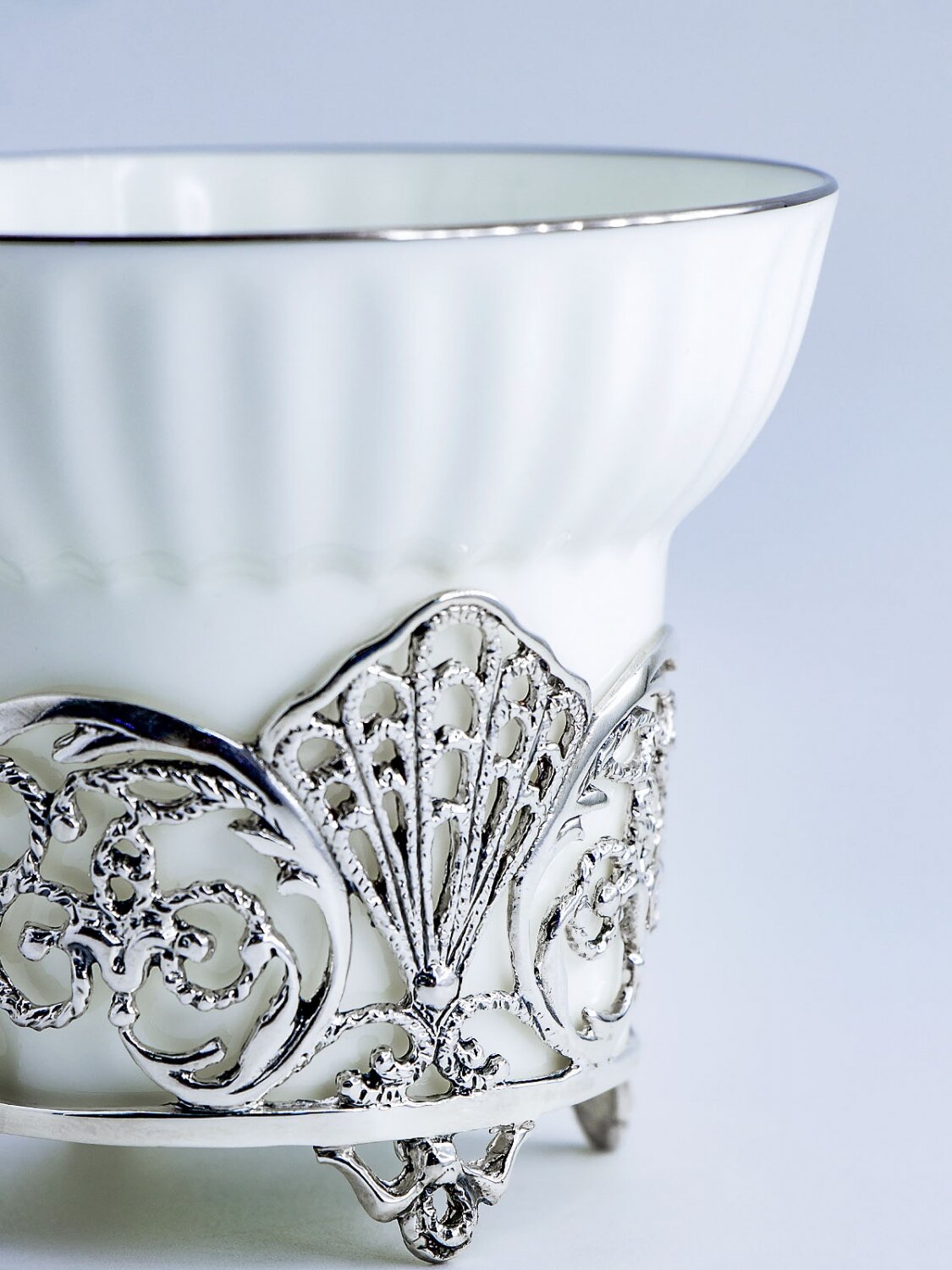 Купить Серебряная чайная чашка Кружевные узоры футляр