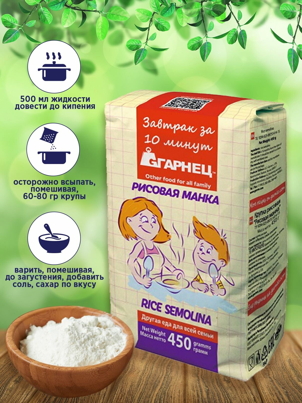 Крупка Гарнец Рисовая манка без глютена, 3 шт по 450 гр, Garnec