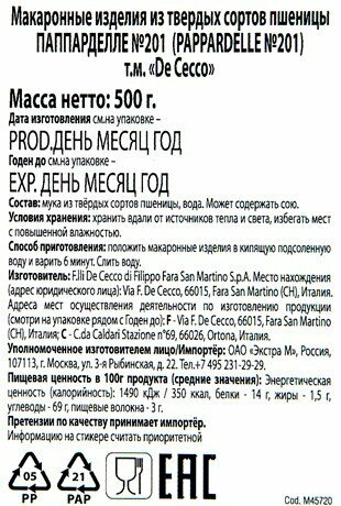 Макаронные изделия De Cecco Pappardelle № 201 500 г интересное: