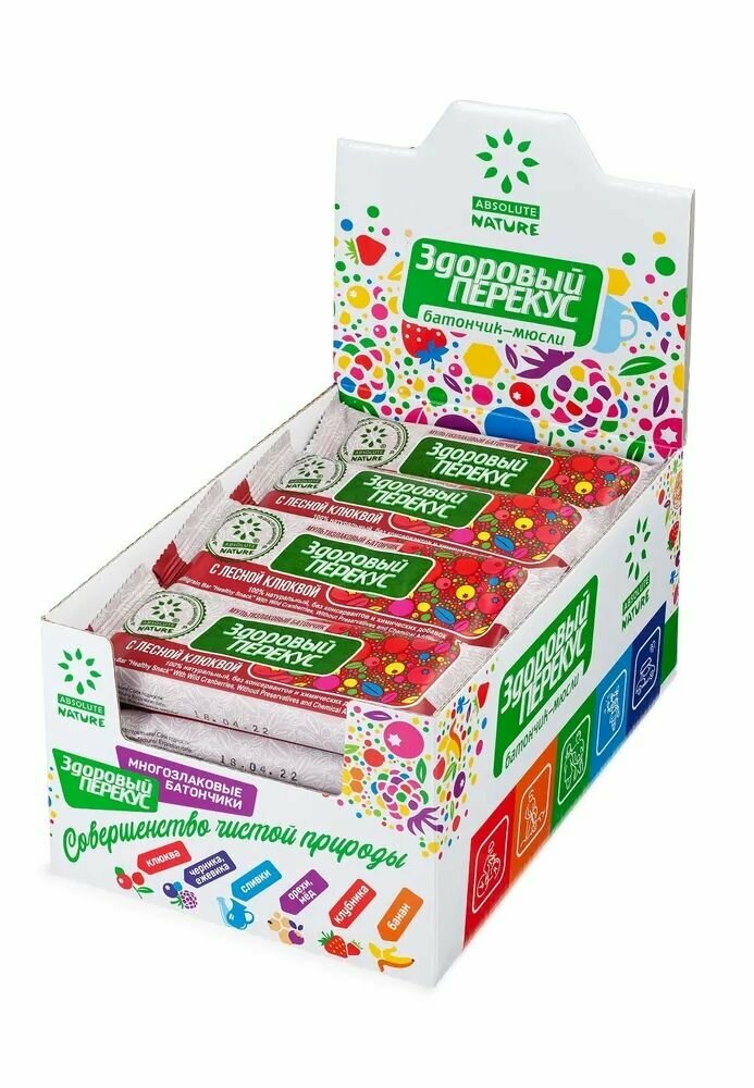 Батончик "Здоровый перекус" с клюквой, 55 гр (20 шт. в наборе) интересное: