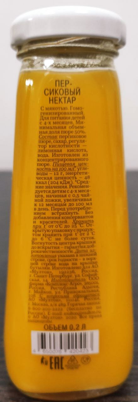 | Состав | персиковое пюре, сахар, регулятор кислотности - лимонная кислота, вода |