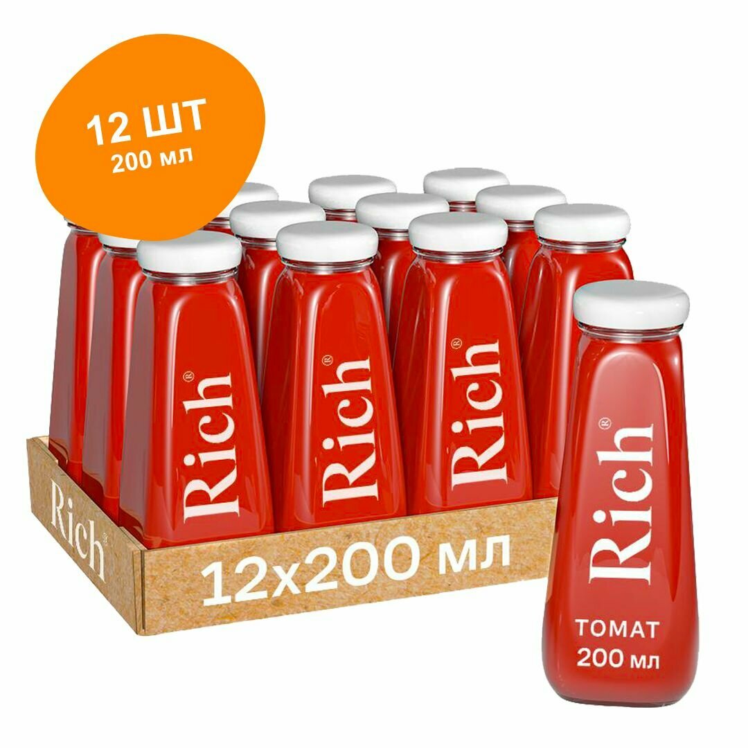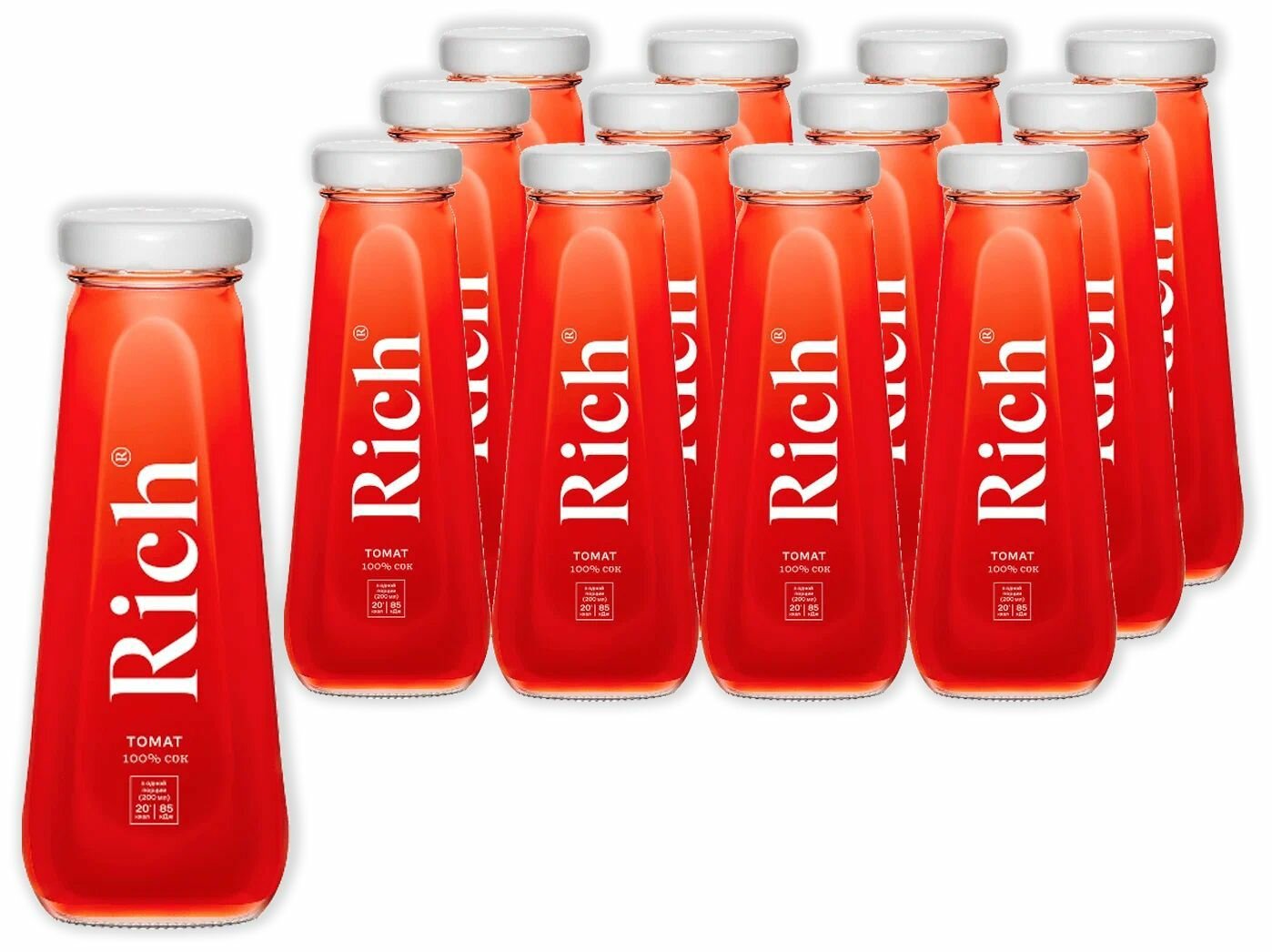 Сок Rich Томат, в стеклянной бутылке, без сахара, 0.2 л, 3200 г, 12 шт.