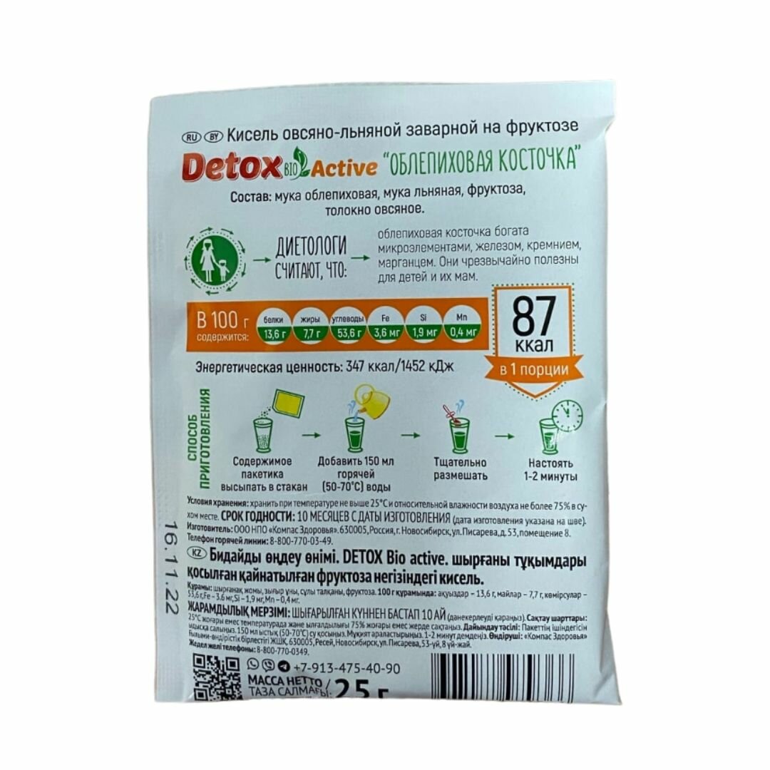 СохранитьКисель овсяно-льняной "Detox Bio Active" на фруктозе, 10 шт по 25 гр, Компас здоровья интересное: