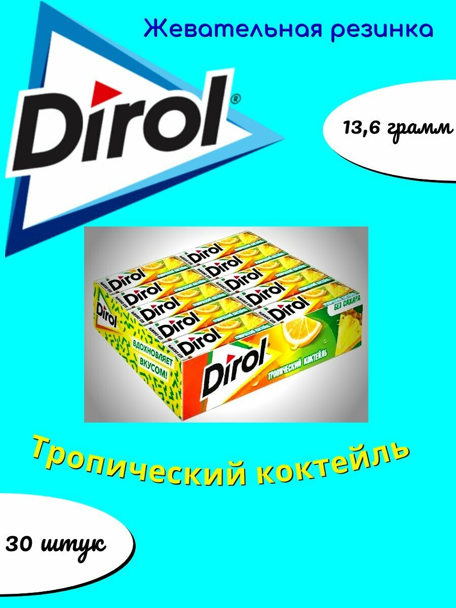 Купить Dirol Жевательная резинка Тропический коктейль, 13,6 г, 30 шт