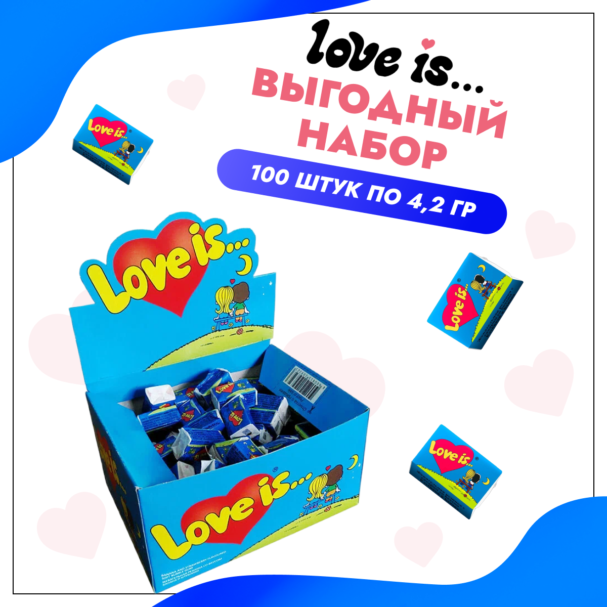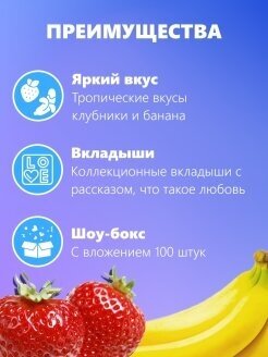 Жевательная резинка Love is. Фруктовое ассорти из 100 шт блок / Набор жвачки со вкусом клубники и банана