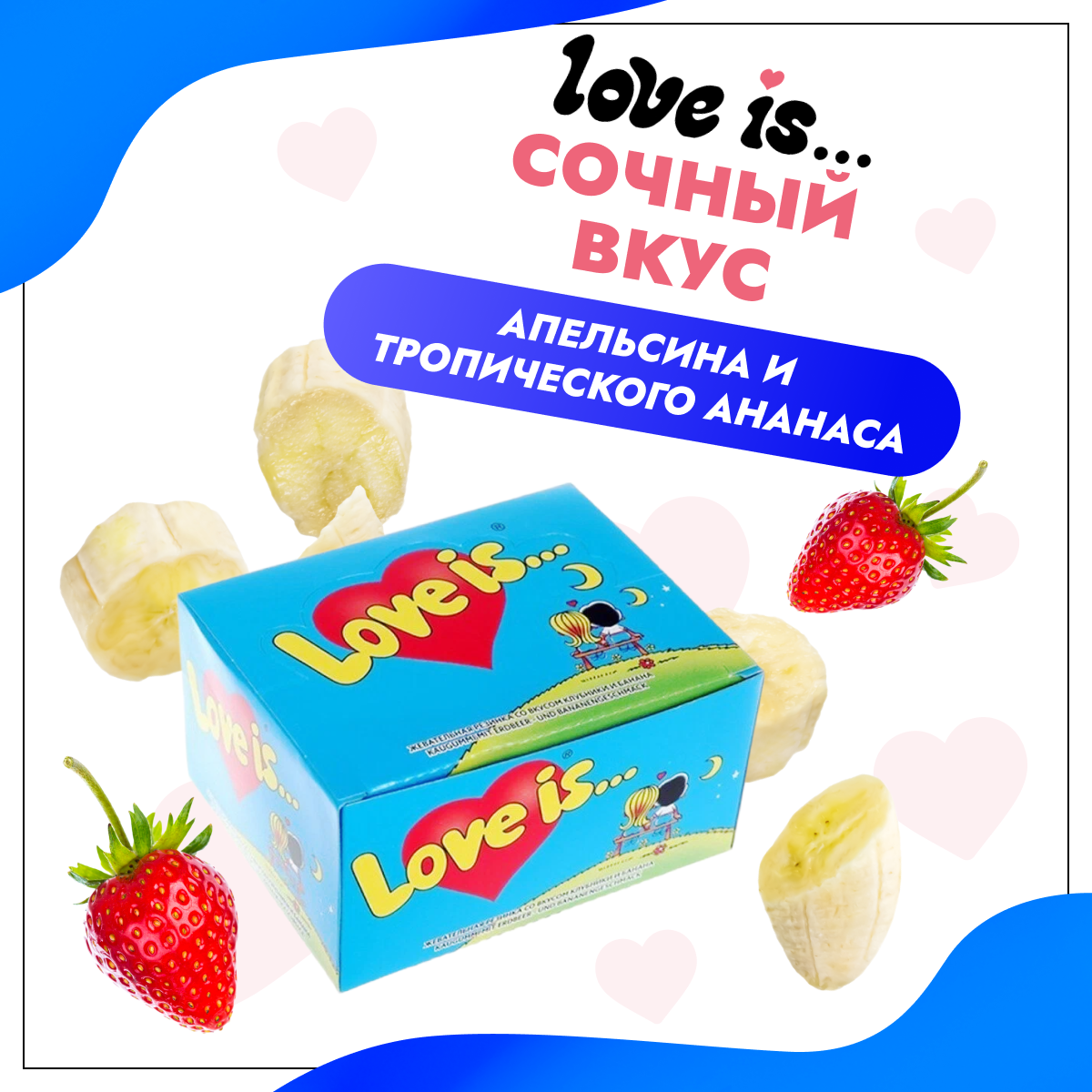 Love is Жевательная резинка со вкусом Клубника-Банан 100шт