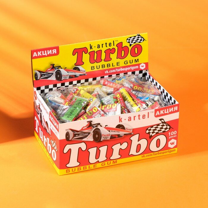 Жевательная резинка Turbosport racing, дыня, арбуз, яблоко, персик, 20*4,5 г 1шт.