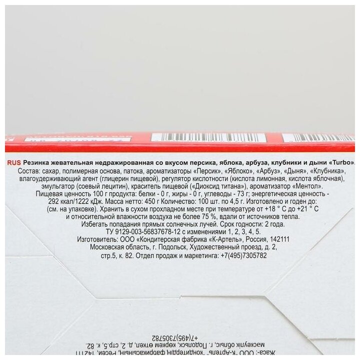 Жевательная резинка Turbosport racing, дыня, арбуз, яблоко, персик, 20*4,5 г 10389615 интересное: