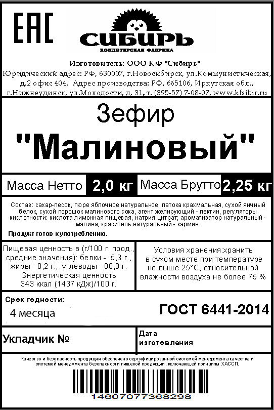 Зефир "Малиновый" / КФ "Сибирь" / семейная упаковка 2 кг интересное: