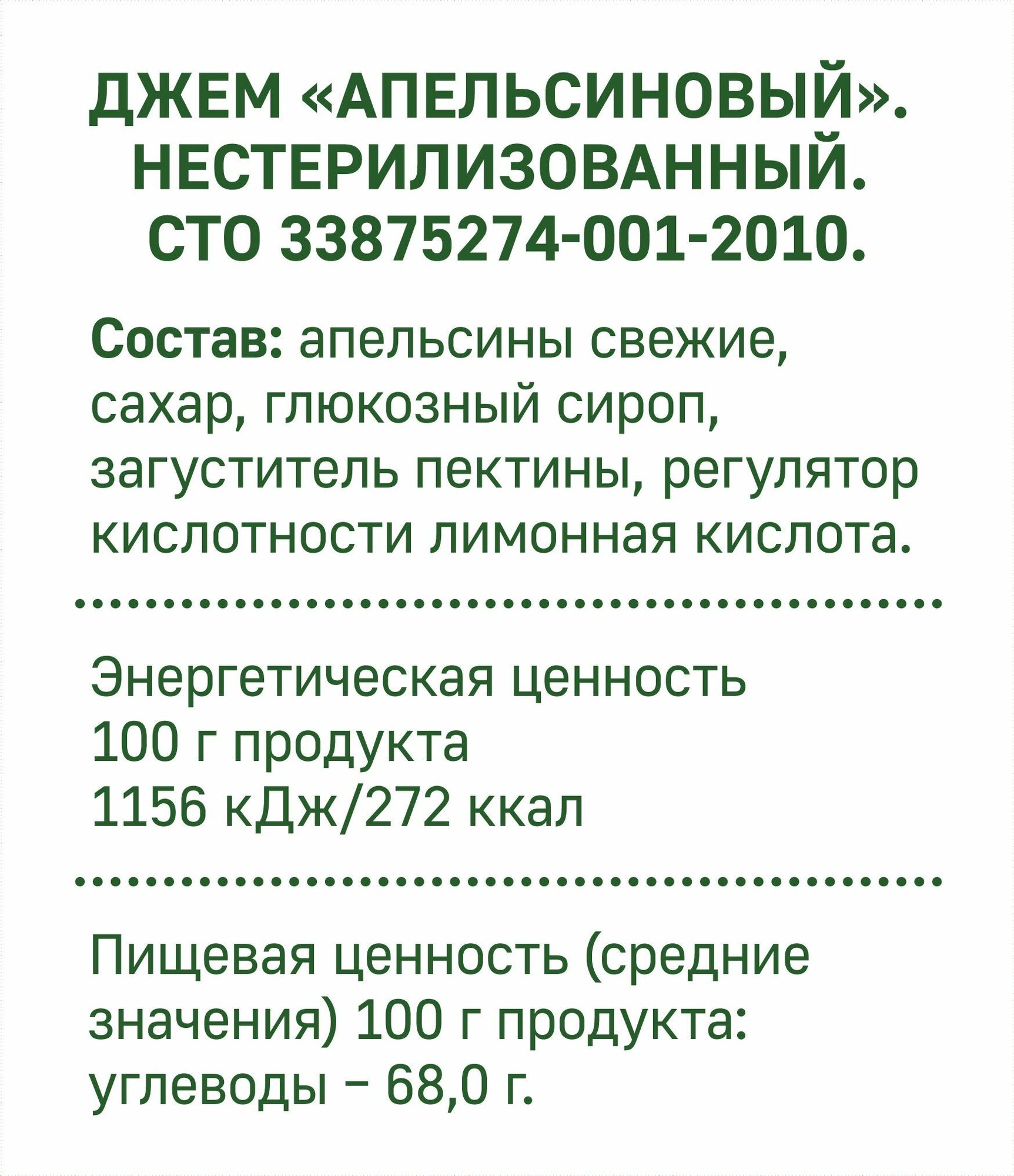 | Состав | апельсины свежие, сахар, глюкозно-фруктозный сироп, загуститель фруктовый пектин, регулятор кислотности - кислота лимонная. |