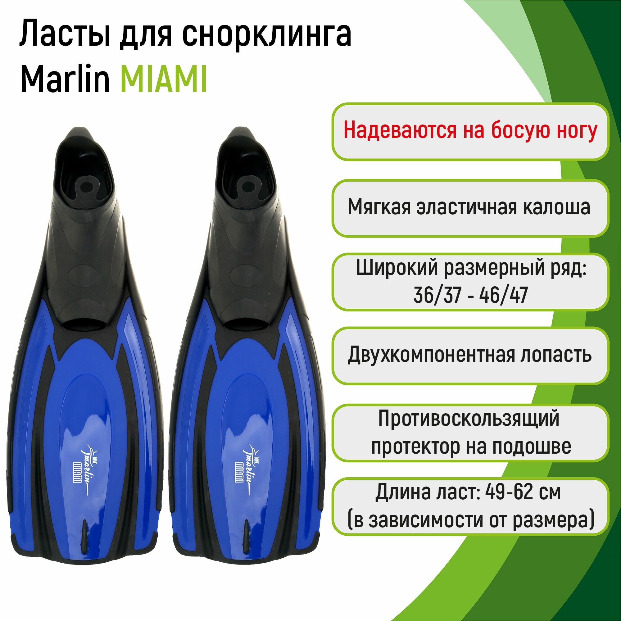 Ласты резиновые MARLIN MIAMI BLUE, синие, р-р 46-47