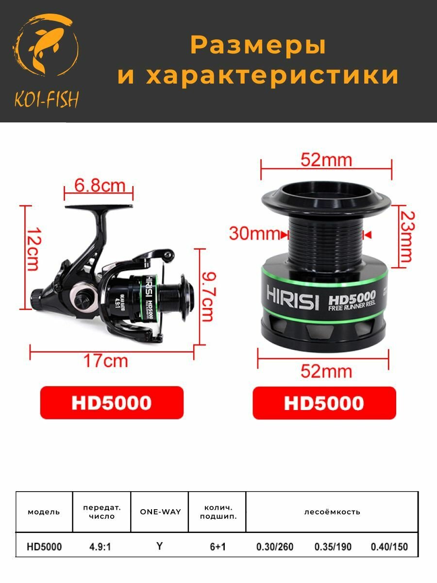 Катушка для рыбалки безынерционная рыболовная Hirisi HX 5000