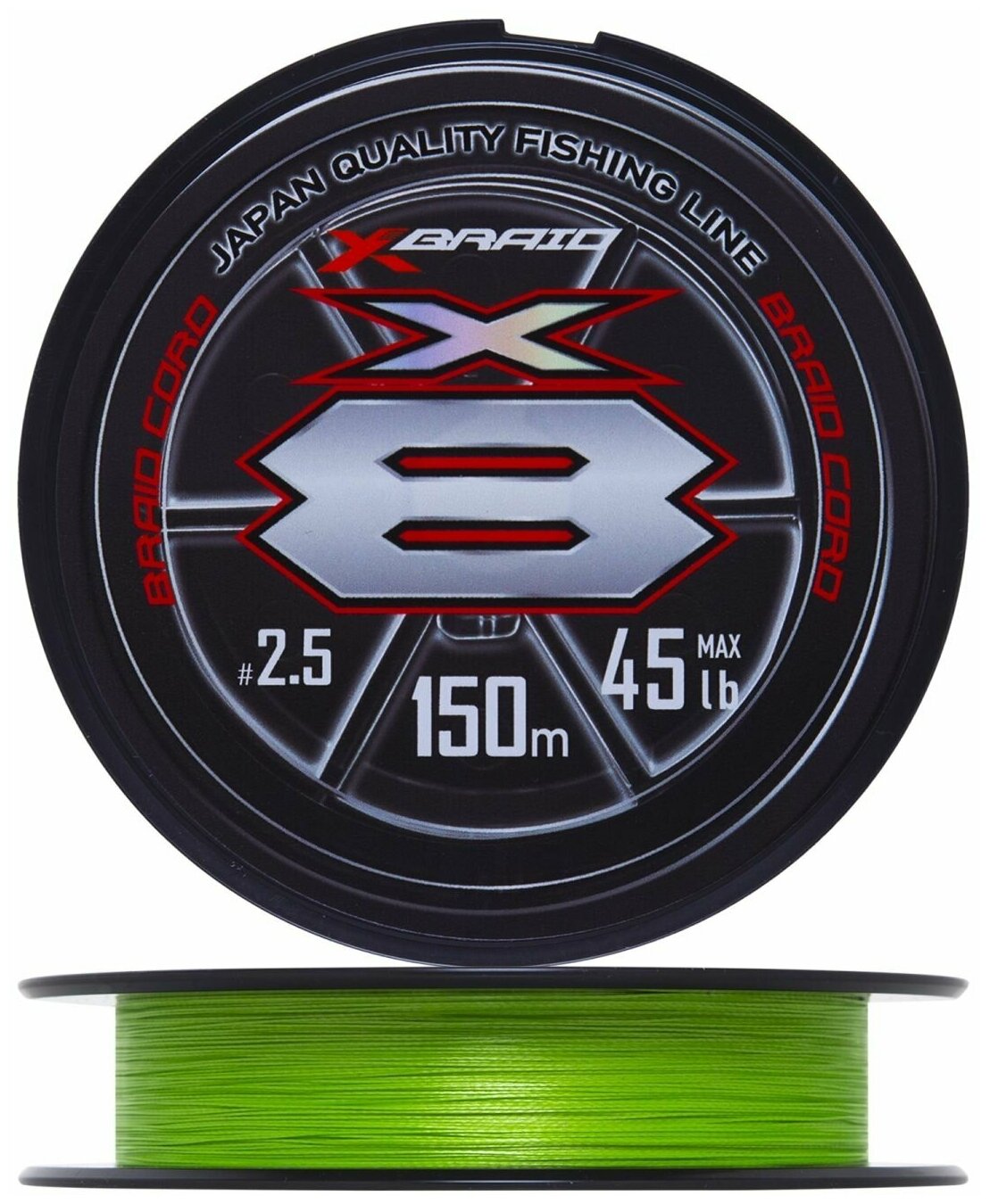 Купить Шнур YGK X-Braid Braid Cord X8 150m Chartreuse #2.5, 0.265мм, 45lb, 20.3кг