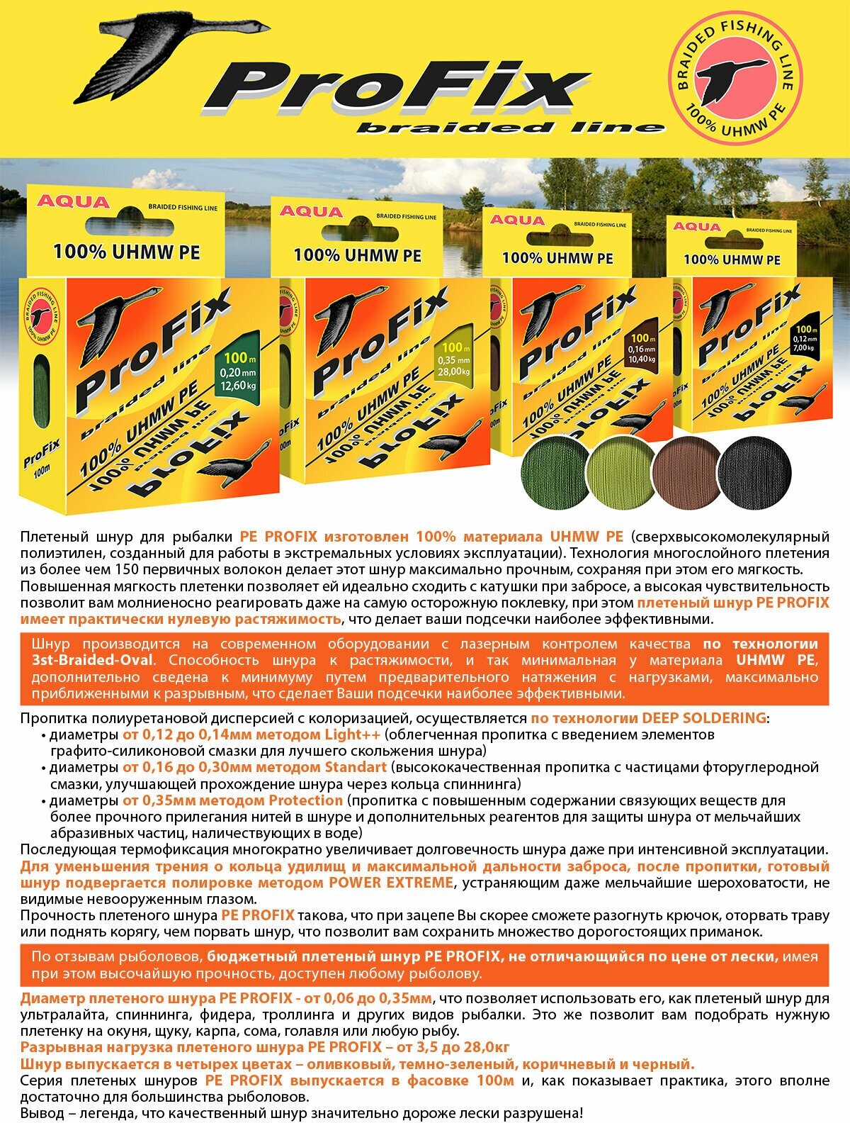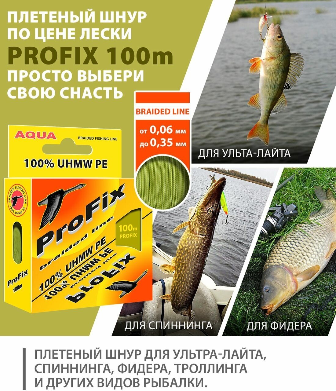 Плетеный шнур для рыбалки AQUA ProFix 100m 0.06mm 3.50kg оливковый 2шт