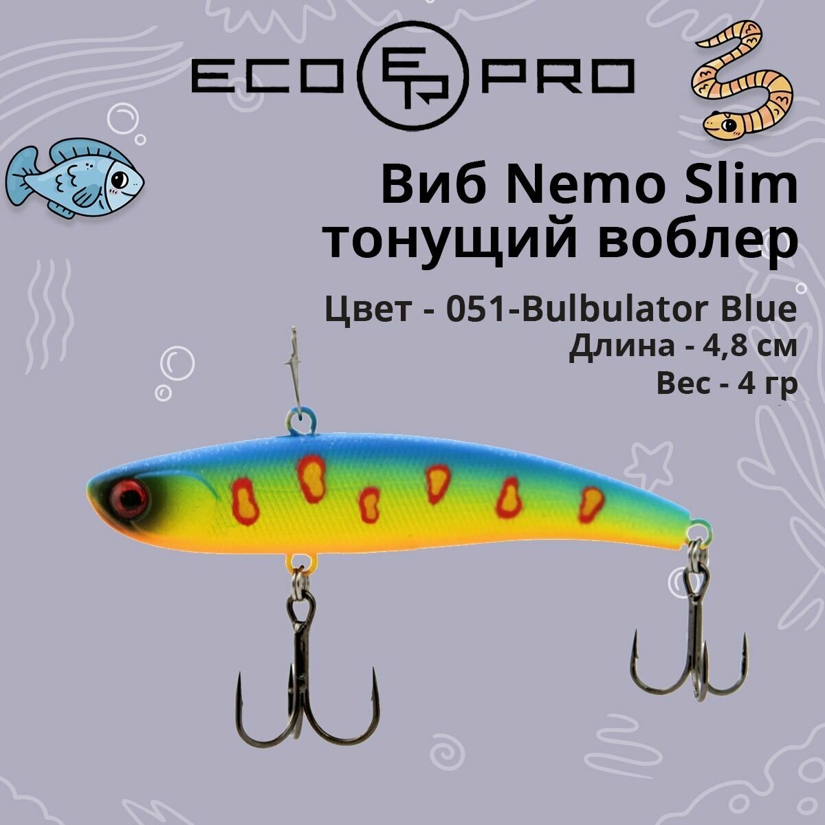 Купить Виб (тонущий воблер) для зимней рыбалки ECOPRO Nemo Slim 48мм 4г 051-Bulbulator Blue