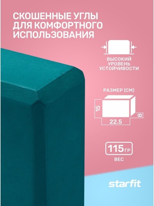 Купить Блок для йоги Starfit Цвет Изумрудный, YB-200, EVA, 8х22,5х15 см, 115 г (ЦБ-00001691)