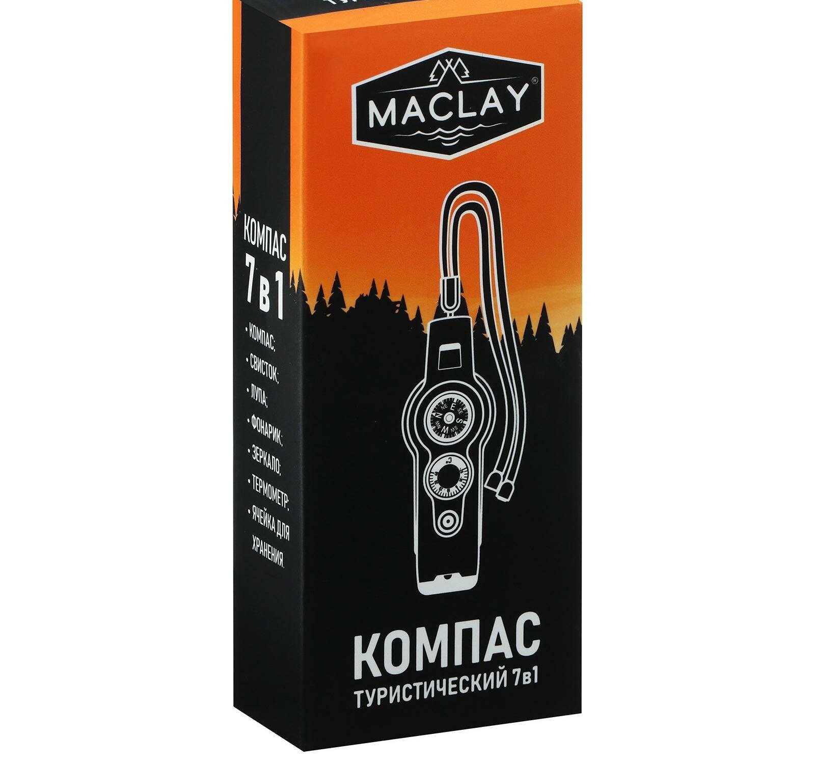 Купить Компас 7 в 1 Maclay: компас, свисток, лупа, фонарик, зеркало, термометр, ячейка для хранения