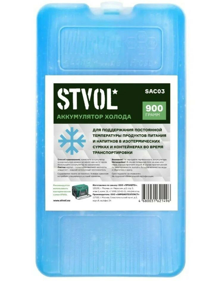 SAC03 STVOL Аккумулятор холода STVOL, пластиковый, 900 гр (мин темп. поддержания 12 ч)