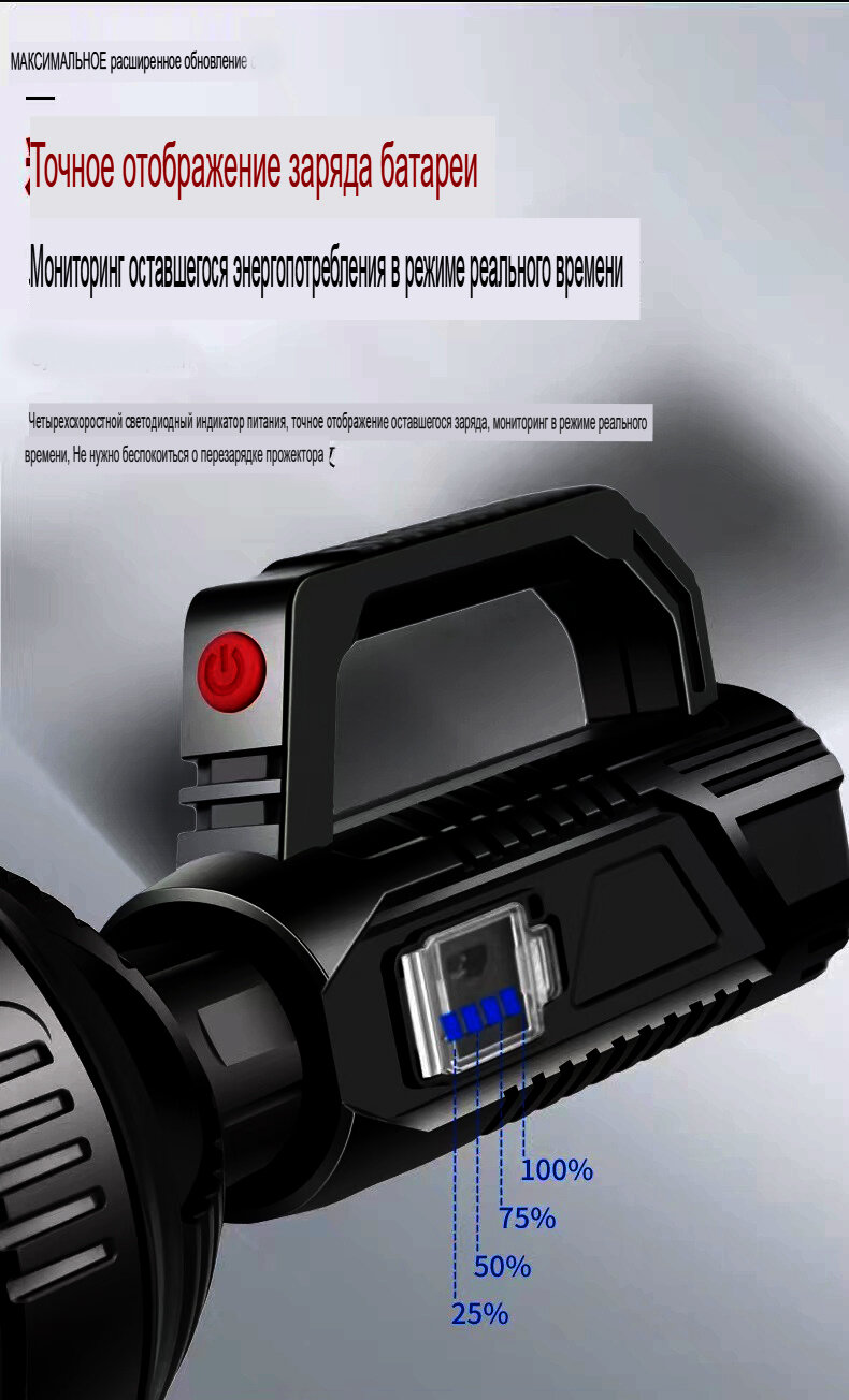 Фонарь светодиодный ручной с индикатором, водонепроницаемый/перезаряжаемый/бликовый фонарик