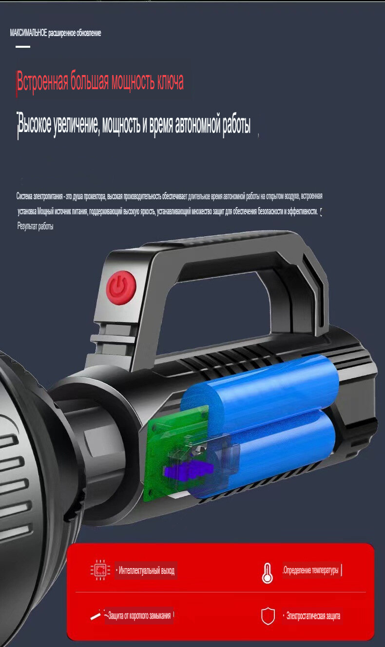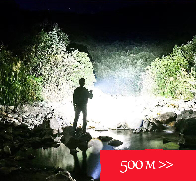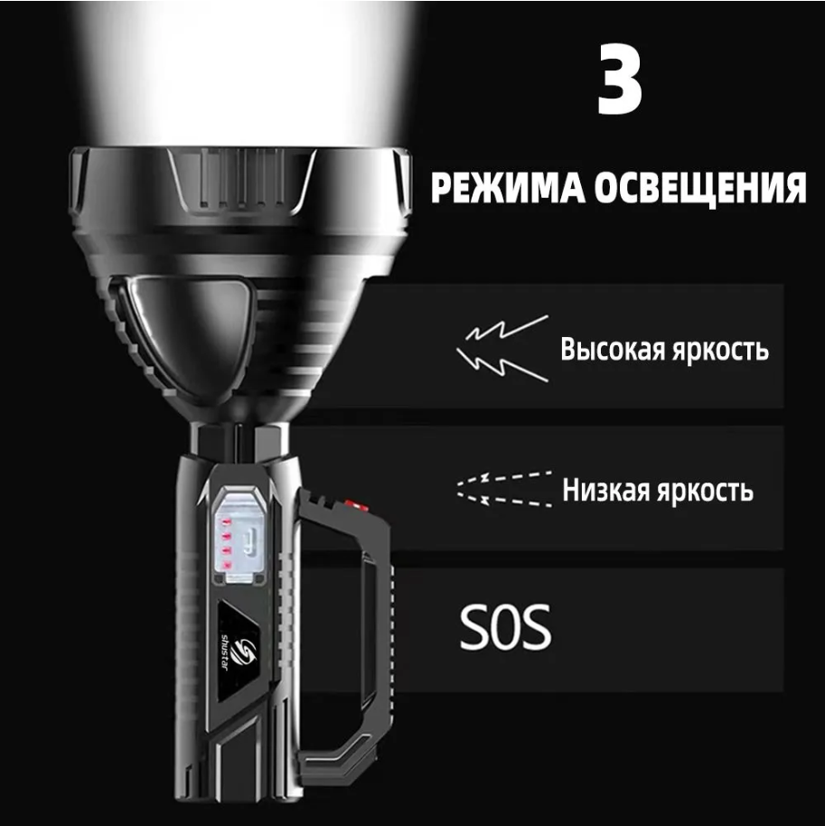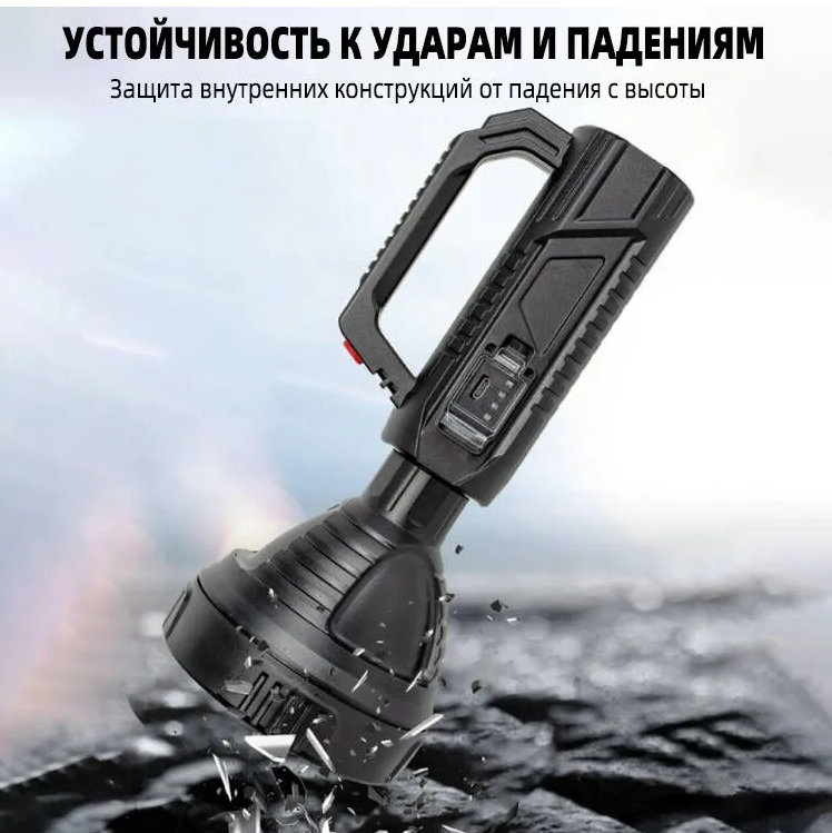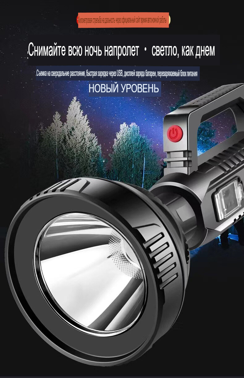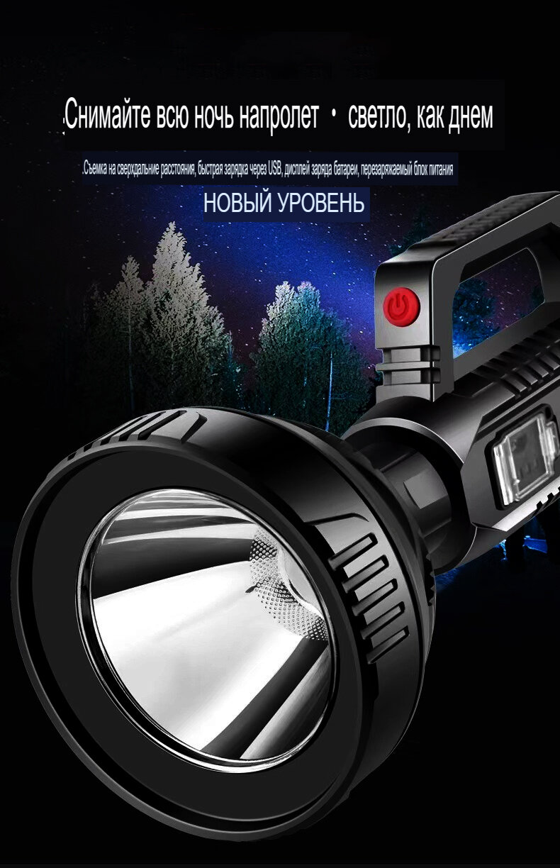 Фонарь туристический прожектор, световой поток 1000 люмен, дальность 500м, USB-заряд