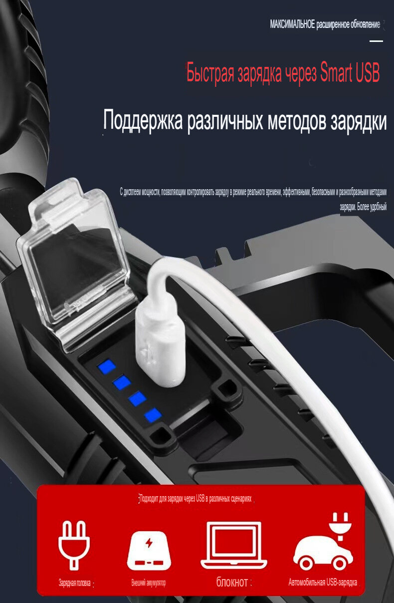 | Особенности | USB-зарядка / влагозащита / дальний свет / дневной белый свет / зарядное устройство / индикация заряда / кабель USB / сигнальный режим / холодный белый свет / экономичный режим |