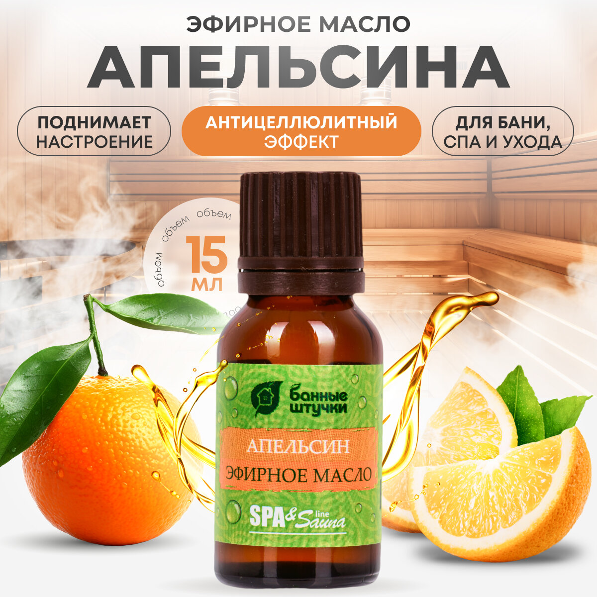 Эфирное масло Банные Штучки "Апельсин SPA & Sauna", для бани и сауны, 100%, 15 мл