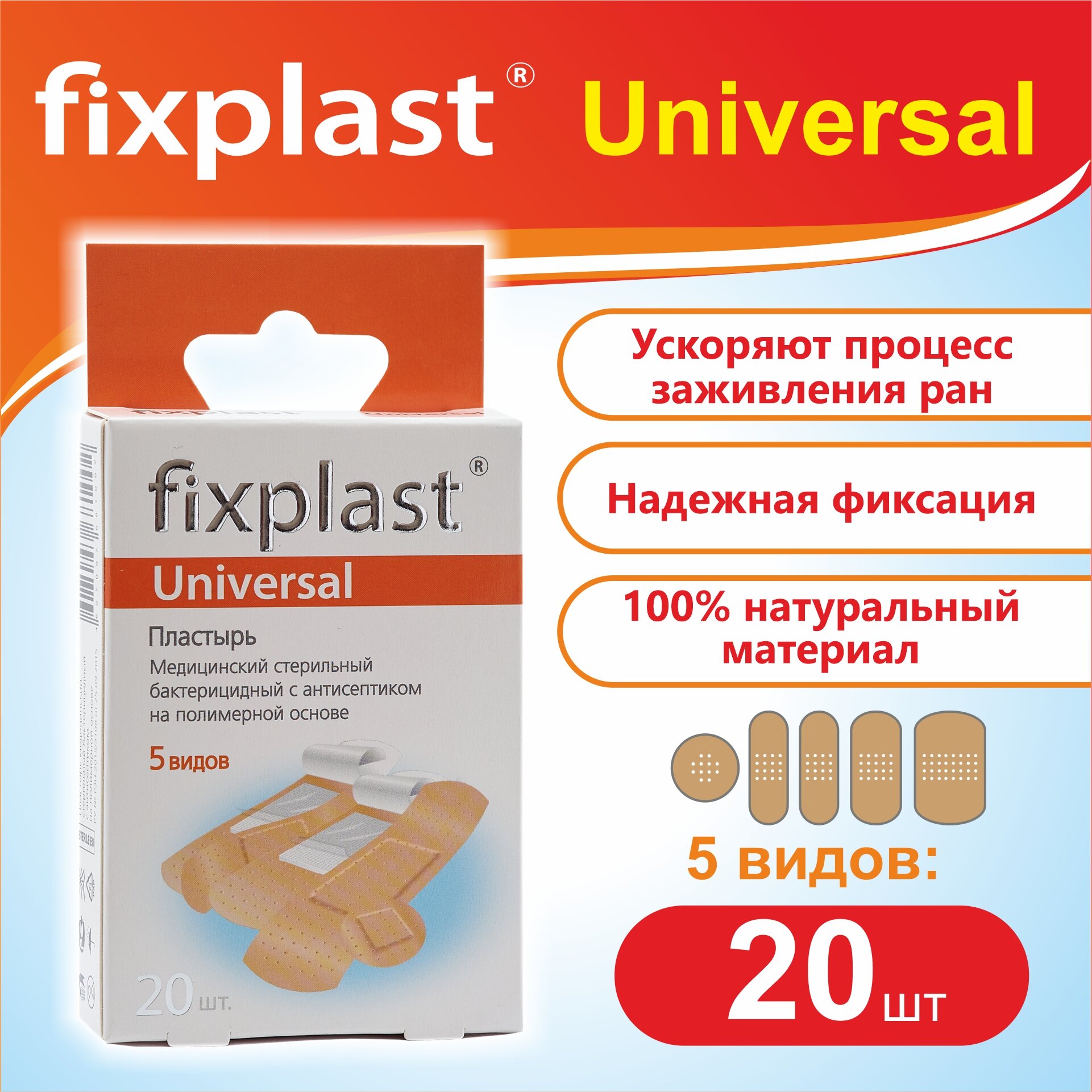Пластырь бактерицидный 20 штук Fixplast Universal стерильный на полимерной основе