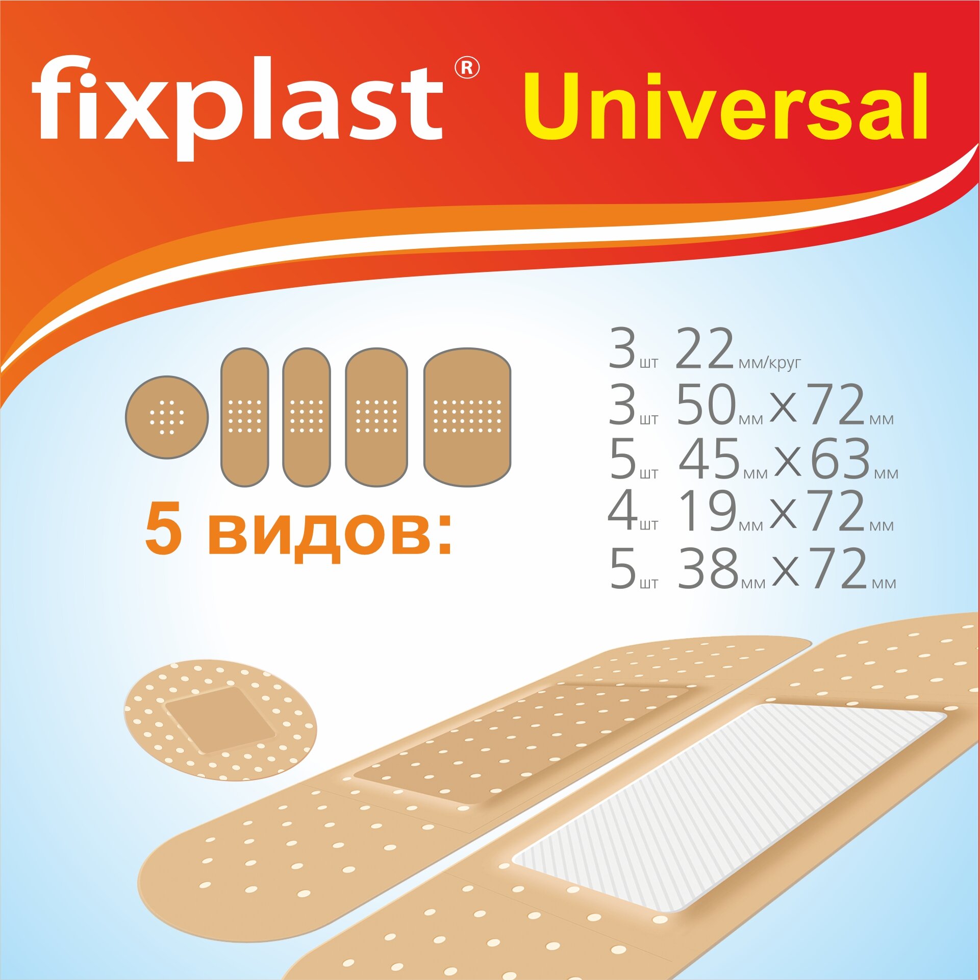 | Дополнительная информация | пластырь разных форт: 3шт-22мм; 3шт-50х72мм;5шт-45х63мм;4шт-19*72мм;5шт-38*72мм |