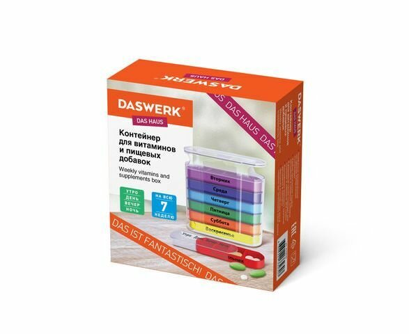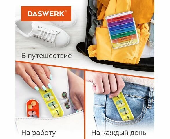 Таблетница / Контейнер-органайзер для лекарств и витаминов "7 дней/4 приема CLEAR" DASWERK, 630846 интересное: