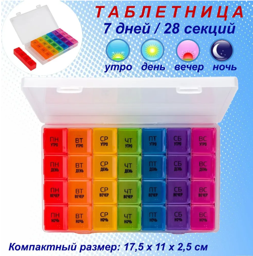 Таблетница, 28 секций на 7 дней интересное: