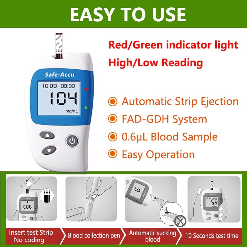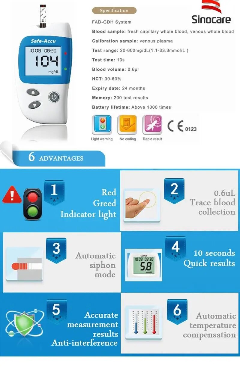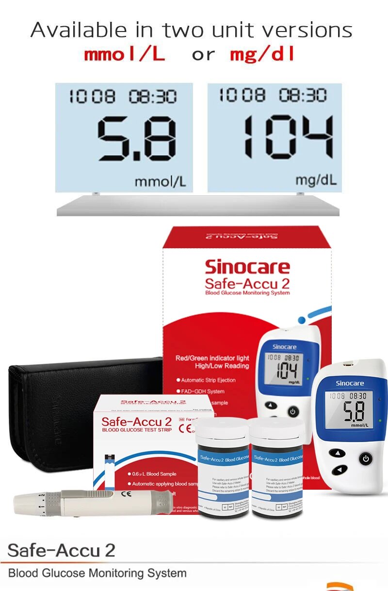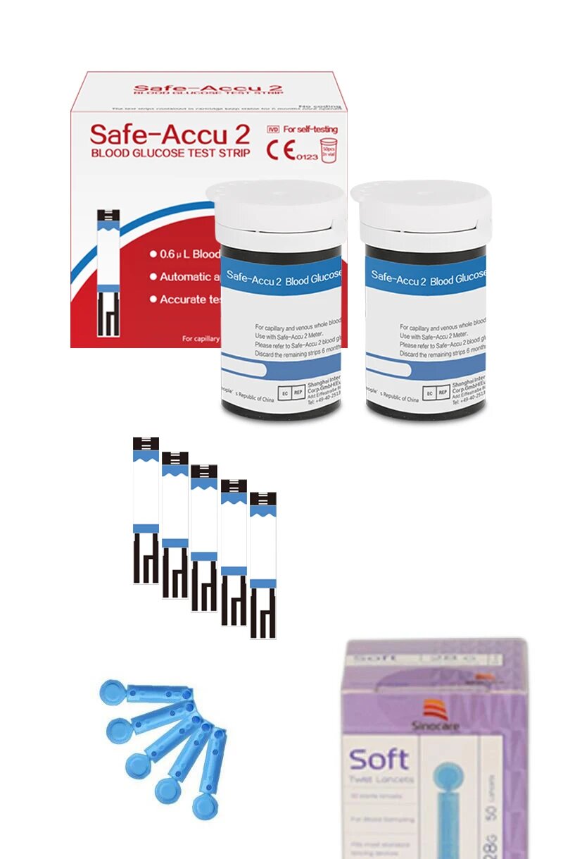 Глюкометр Sinocare Safe-Accu с 50/100/200 тестовыми полосками и ланцетами, only 100 strip